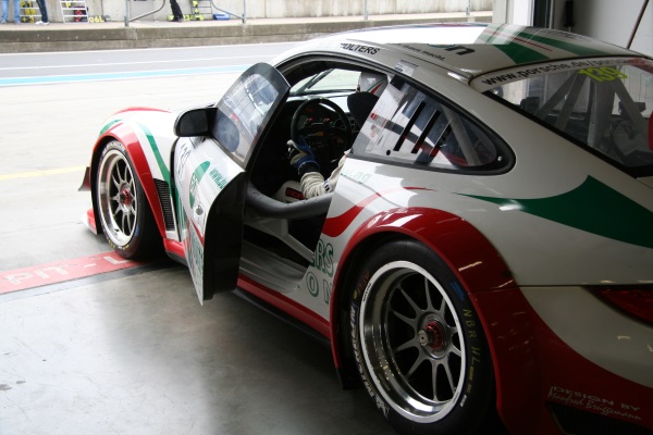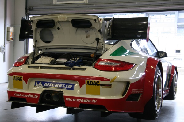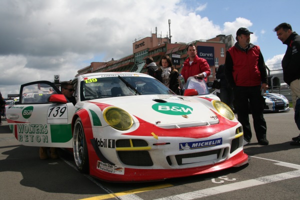 Kurz vor dem 1. Rennen am Samstag Nachmittag, kam ein kräftiger Regenschauer herunter... doch pünktlich vor dem Rennstart hörte es auf zu regnen, das verursachte wieder mal einen Reifenpoker vom Feinsten. Während einige noch eilig im Vorstartbereich auf Trockenreifen wechselten, entschied sich das Wolters Motorsport Team auf Regenreifen ins Rennen zu gehen. Doch durch eine Startverzögerung und den Wind in der Eifel trocknete die Strecke etwas früher ab, als es Heinz-Bert lieb war.