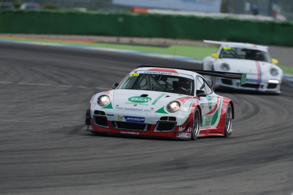 Am Sonntag beim 2. Lauf ging es durch den Ausfall vom Vortag aus der 38.(!) Position ins Rennen. Das Team vereinbarte vorher, das bei erneuten Schwierigkeiten rechtzeitig die Box aufgesucht wird. Doch wider Erwarten lief der Porsche diesmal einwandfrei. Was dann folgte war eine sehenswerte Aufholjagd von Heinz-Bert Wolters. Bereits nach der ersten Runde konnte er über 20 Konkurrenten überholen, zehn Runden später hatte Heinz-Bert sich sogar bis auf den dritten Platz nach vorne gearbeitet. Bis zum Fallen der Zielflagge konnte er auch noch an Sven Heyrowski vorbeiziehen und wurde sensationell Zweiter.