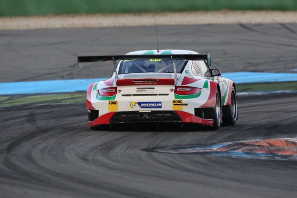 Beim Start zum ersten Rennen am Samstagnachmittag zeigte der Wegberger abermals eine gute Performance und nahm schon nach Kurve 1 die dritte Gesamtposition ein. Diese baute er zuerst auch kontinuierlich aus. Doch ab Mitte des Rennens bauten die Reifen des Porsche 911 GT3 R schon stärker ab, als es offensichtlich bei den beiden ärgsten Verfolgern der Fall war. Als auch noch ein Fahrzeug zur Überrundung anstand, klemmte dieser den Wegberger ein, deshalb konnte er sich nicht mehr gegen den Überholvorgang eines Verfolgers wehren. Letztendlich wurde es dadurch der 5. Gesamtrang.